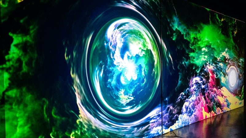 Fourteen Charlottesville artists have collaborated in one space to create an immersive project of light, color, sound, tactile and interactive opportunities, digital media and diverse materials. Said visual artist Jeff Dobrow, “All kinds of artists [came] together to each fill in a niche in an entire experience, creating a cohesive, artistic experience.”