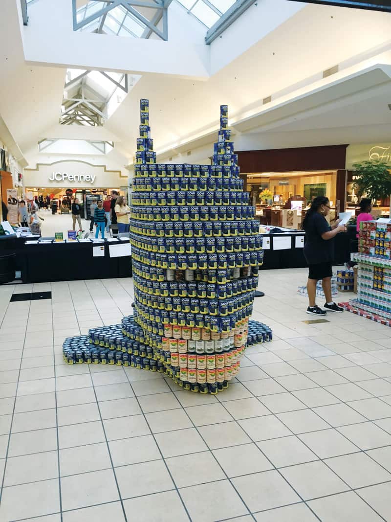 Imagine an 8-foot-tall butterfly sculpture made entirely of canned goods, no adhesives allowed, the cans providing the structure and the labels providing the colors. Imagine cans making a 12-foot-tall football, 14-foot-tall cornucopia or 9-foot-tall jack o’ lantern. Picture the challenge, enjoyment and satisfaction of those who designed and built the sculptures. Now imagine that all the cans later go to FeedMore to aid food-insecure individuals.