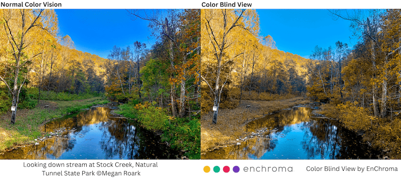 A gift to colorblind park visitors. Natural Tunnel State Park in Southwest Virginia has installed an EnChroma viewer, equipped with special lenses to help those with red-green Color Vision Deficiency (CVD) experience colors. It’s the first park in Virginia to add this technology.
