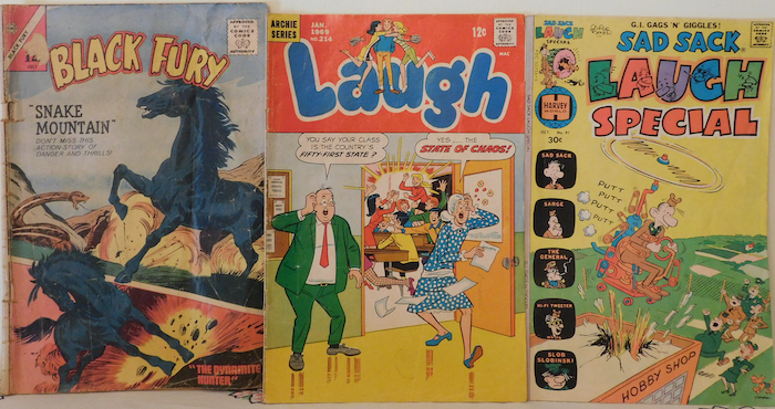 I continued reading my comic books until I was around 20, and in recent years I assumed all those old comic books had been discarded. But a couple of years ago while my brother and I were going through our mother’s things, I came across a storage box upstairs that held a few surprises. Inside I found copies of Black Fury (a horse adventure series), Laugh (Archie Series), and Sad Sack Laugh Special. I was so glad my mother had saved these comic books.